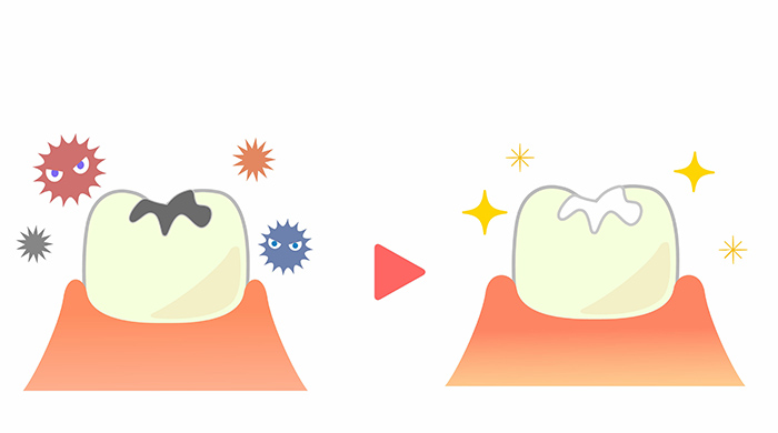 歯質強化や殺菌効果のあるフッ素を歯の表面に塗布します。再石灰化が促す作用もあるため、ごく初期の虫歯ならば治ることもあります。